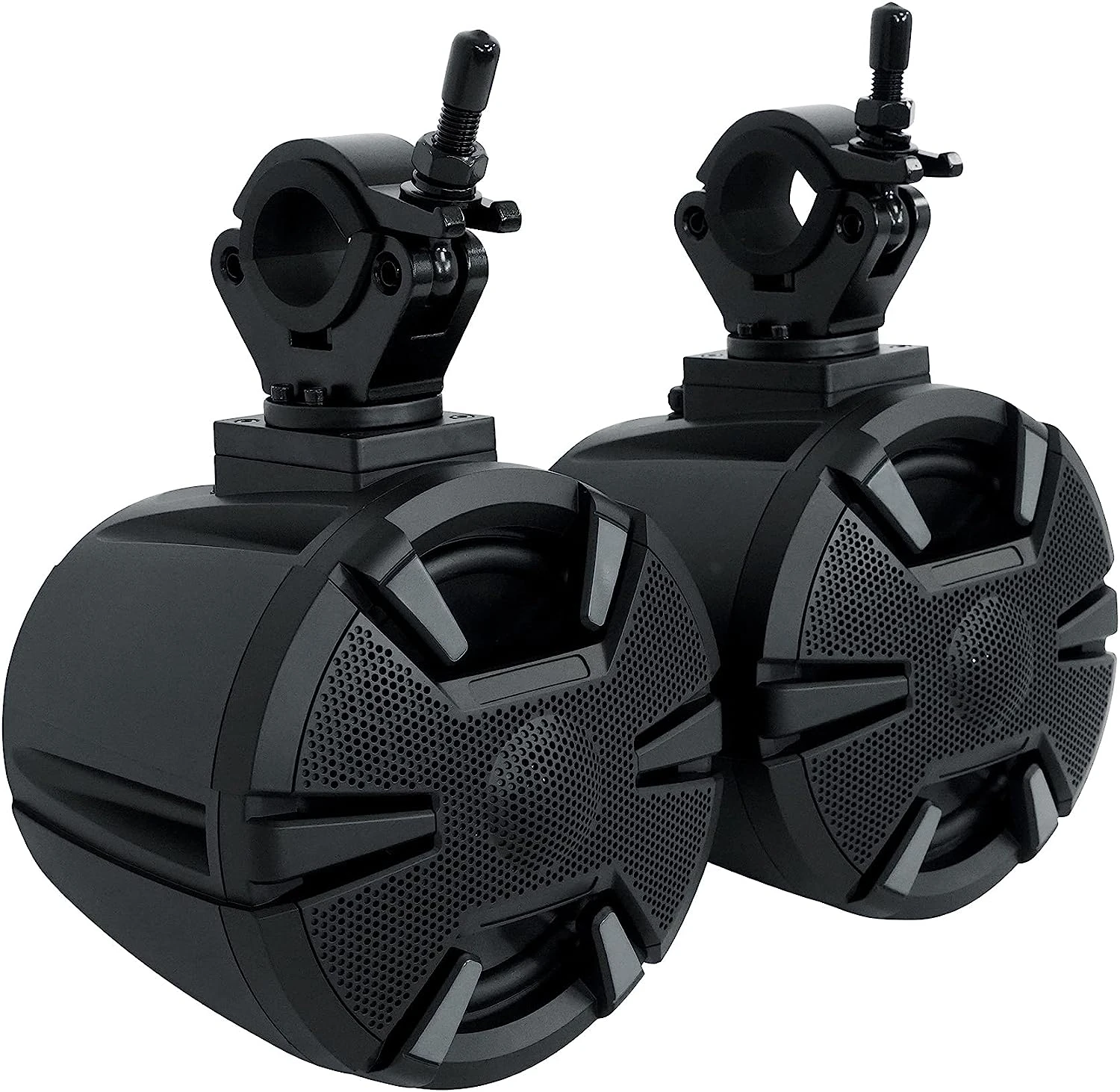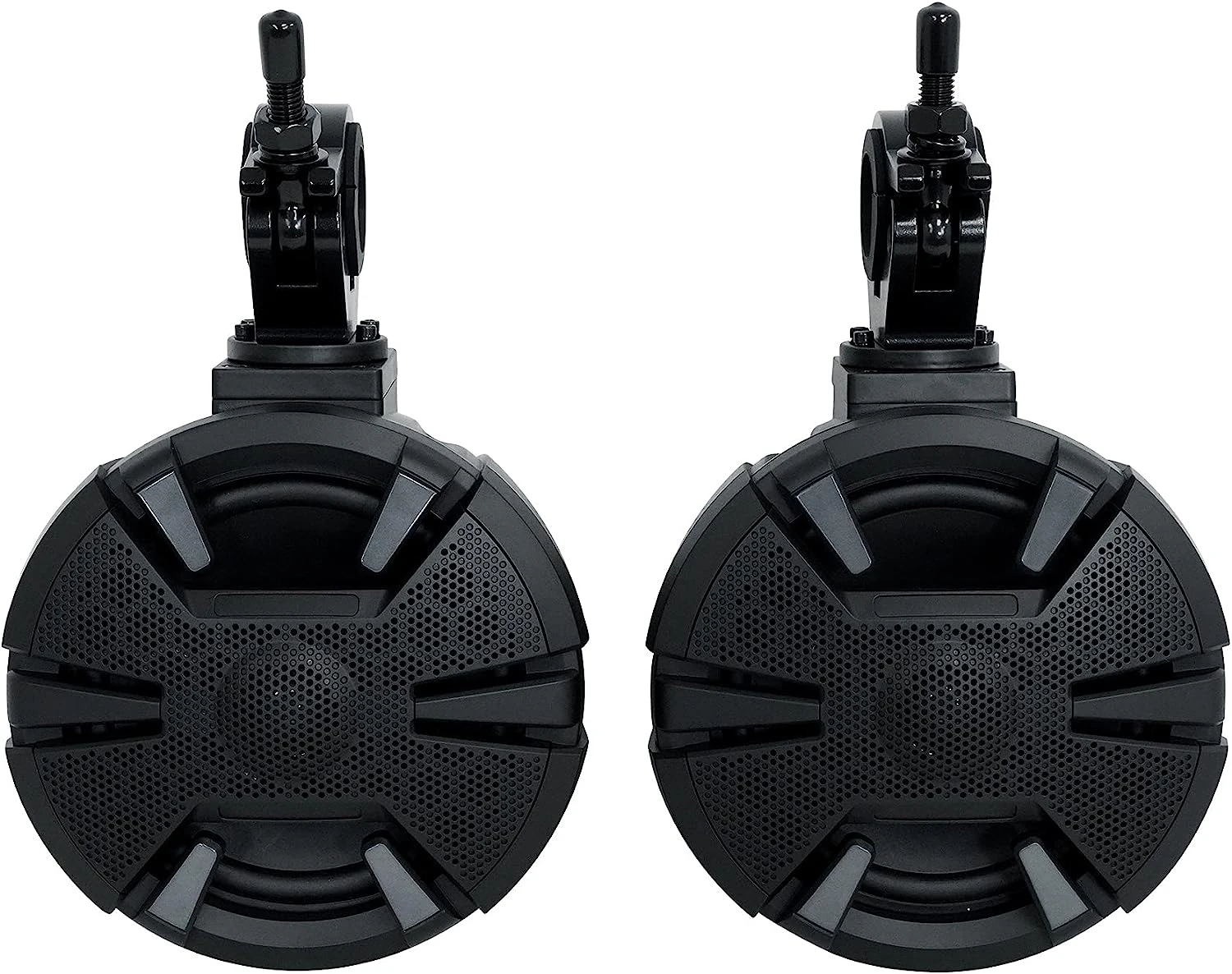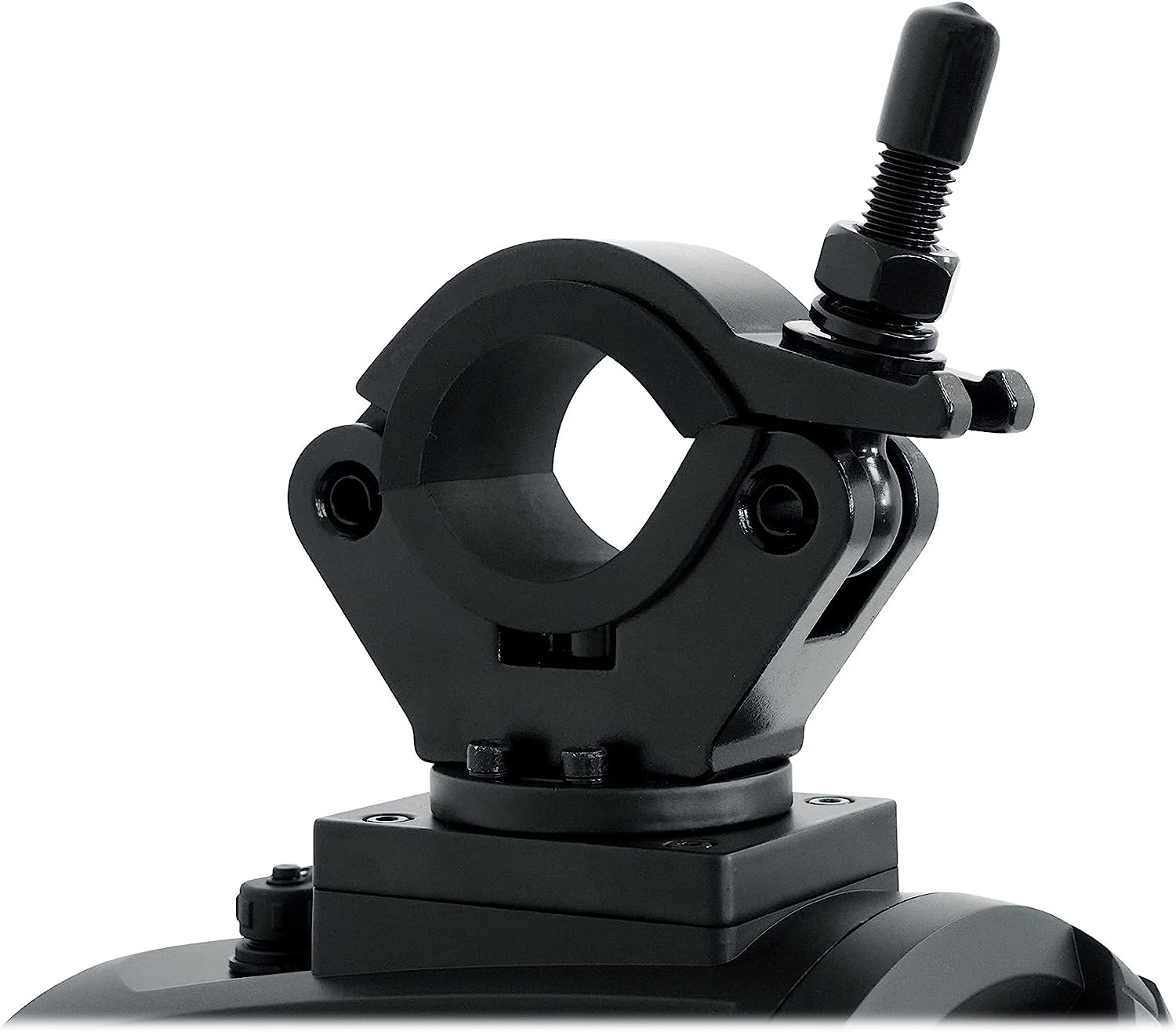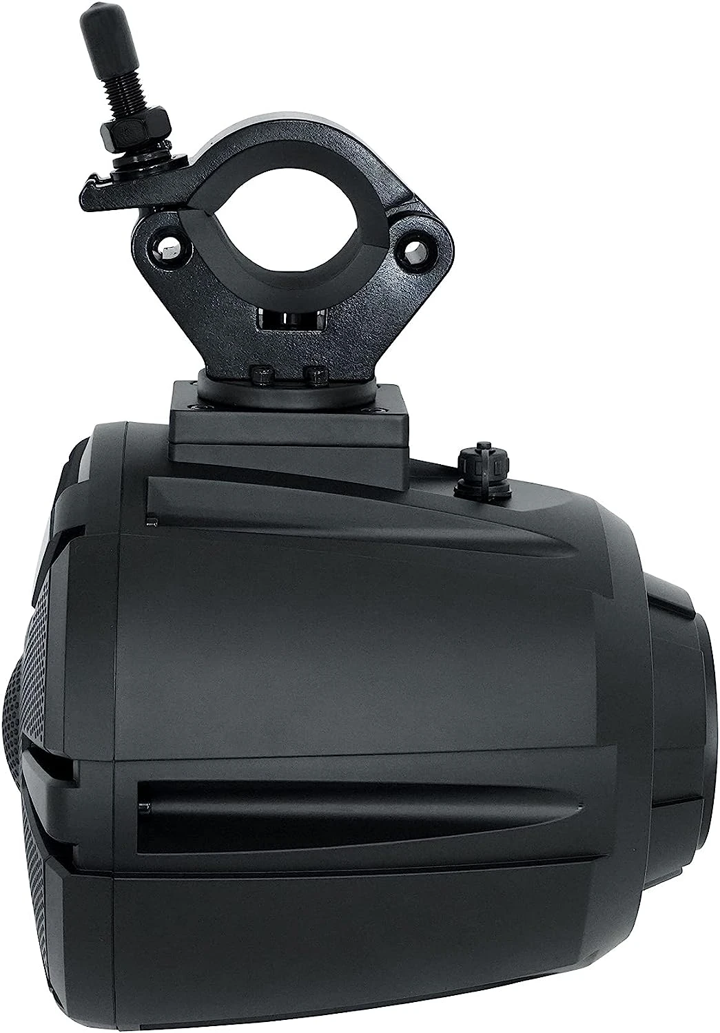 The included clamps are durable, with a rotating coated aluminum base that can adjust up to 90-degrees for an optimal listening position. These folding-style clamps were optimized to fit 1.5” – 2” rails on a variety of side-by-side, UTV, and many other All-Terrain vehicles.