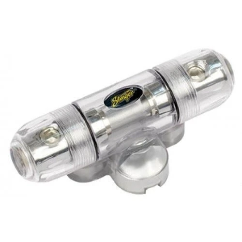 This popular AGU style fuse holder features a clear see-through design with a molded mounting bracket, Allen head set screws and protective end caps.